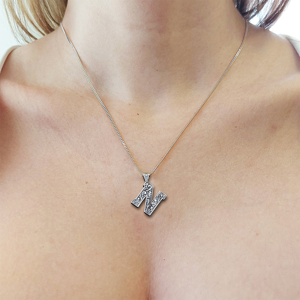 925 Sterling Silver Custom Design Monogram Letter N Necklace