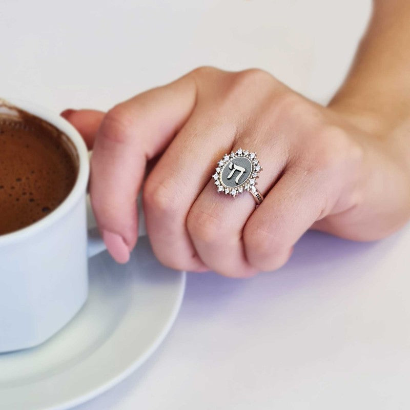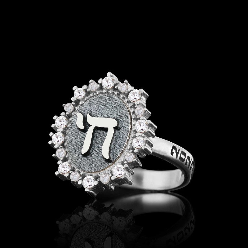 925 Sterling Silver Jewish Chai Symbol Women Ring