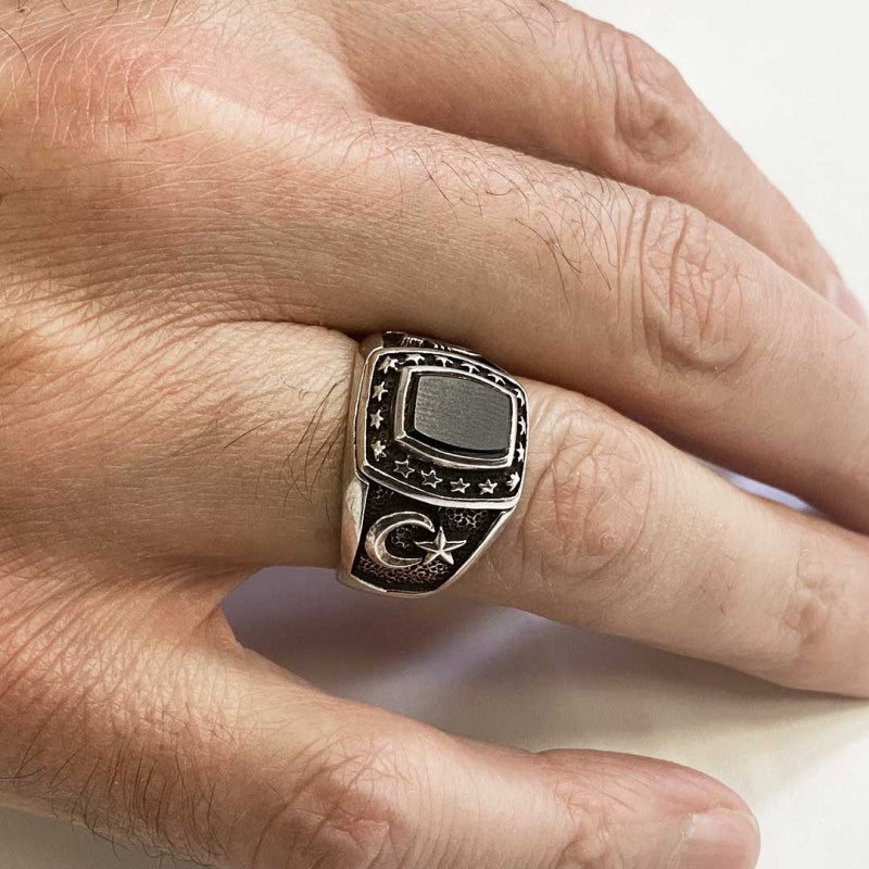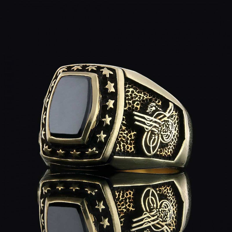 925 Sterling Silver Tughra Ring with Stars