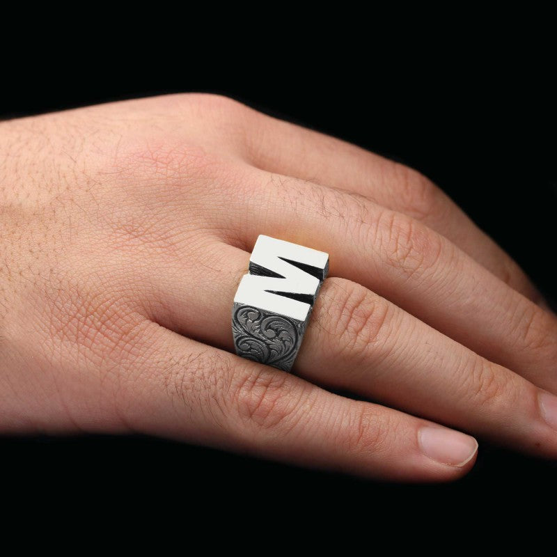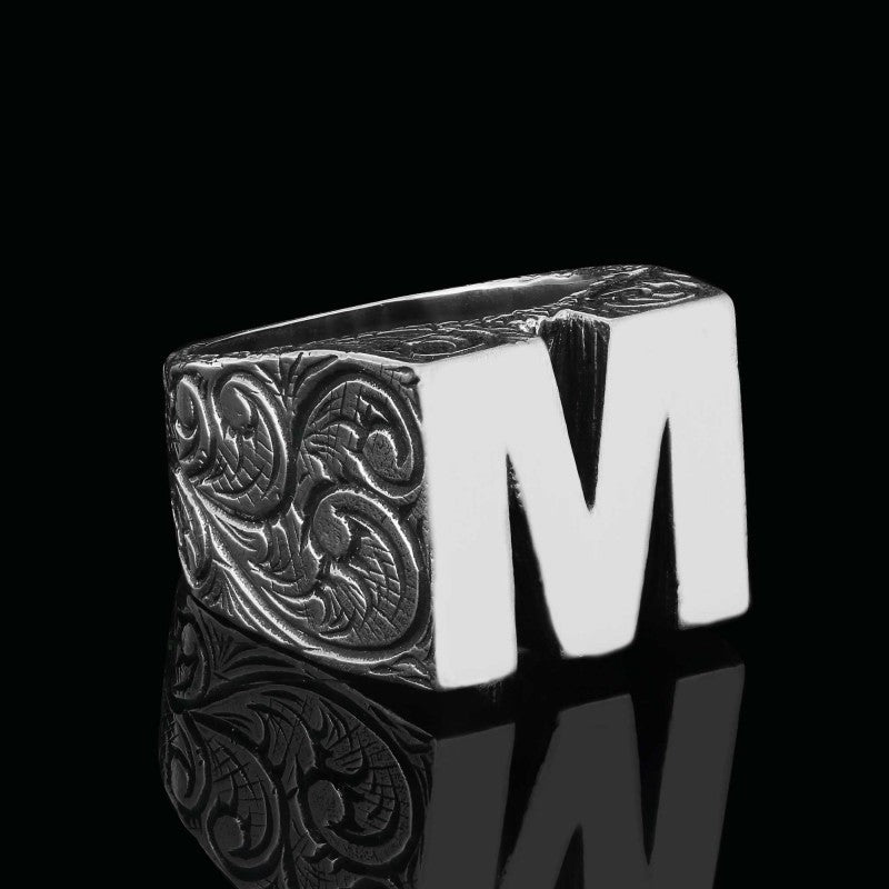 Sterling Silver Monogram Letter M Ring