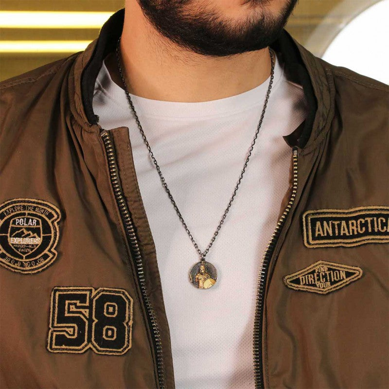 Unique Textured Round Spartan Men Necklace