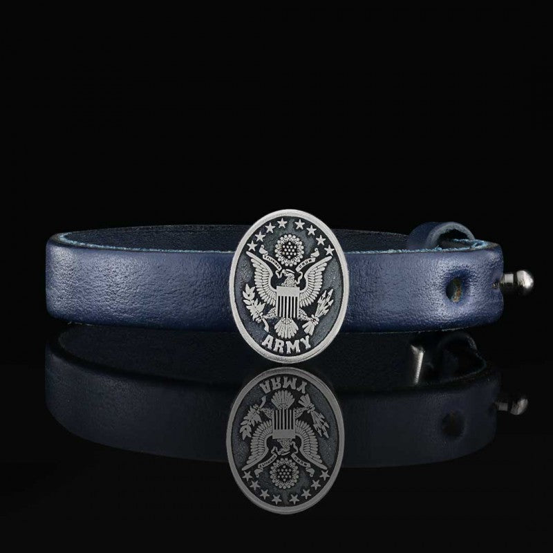 Now you can give to yourself or your loved ones a meaningful and unforgettable gift with our great jewelry! We also offer highly customizable products if you so choose. Our craftsmen manufacture our beautiful handmade United States Army leather braceletwith supreme craftsmanship.
